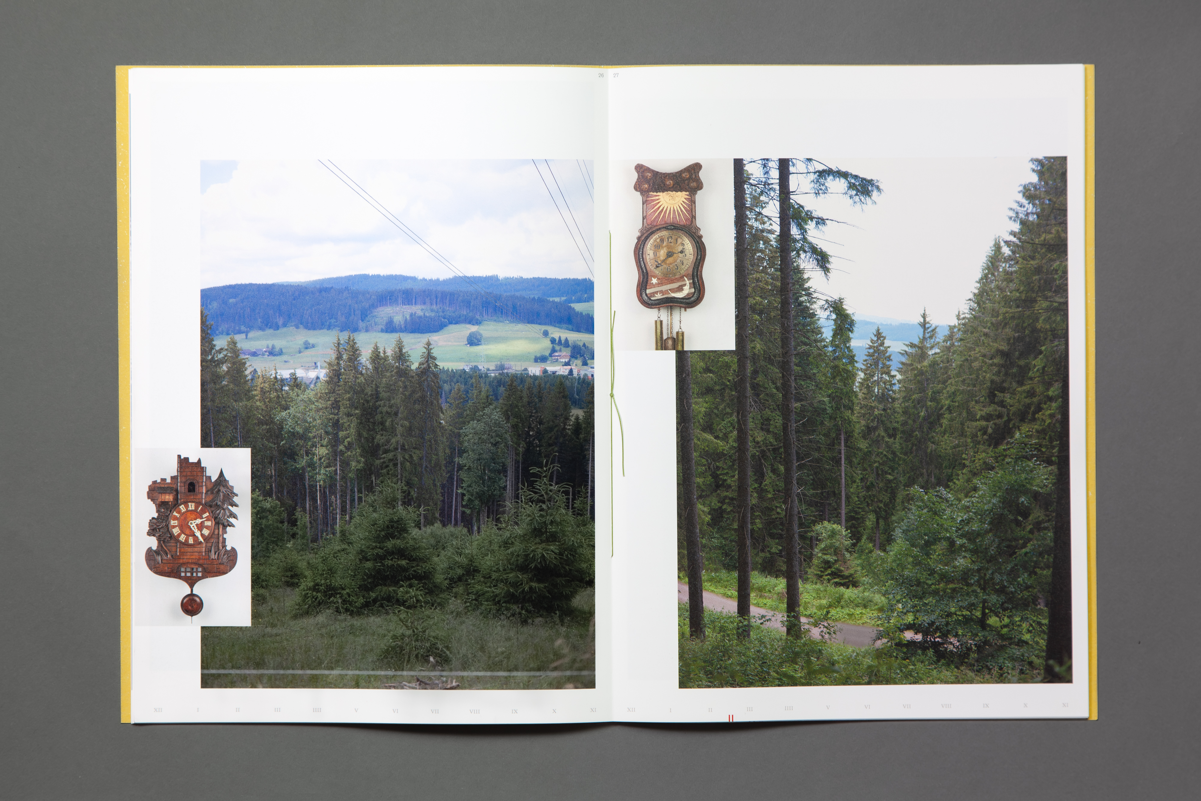 We investigate two archives—the German Clock Museum and the Baden State Museum in Southwest Germany—for their clock-making history. In the Black Forest, a clockmaking tradition began in the mid-17th century. Thousands of timekeeping machines are now stored in the clock museum, showing different times at the same moment. For instance, one clock freezes at 8:10, another at 4:00. We respond to these timepieces at these specific times during our trip to the Black Forest in June, in the longest days of the year.