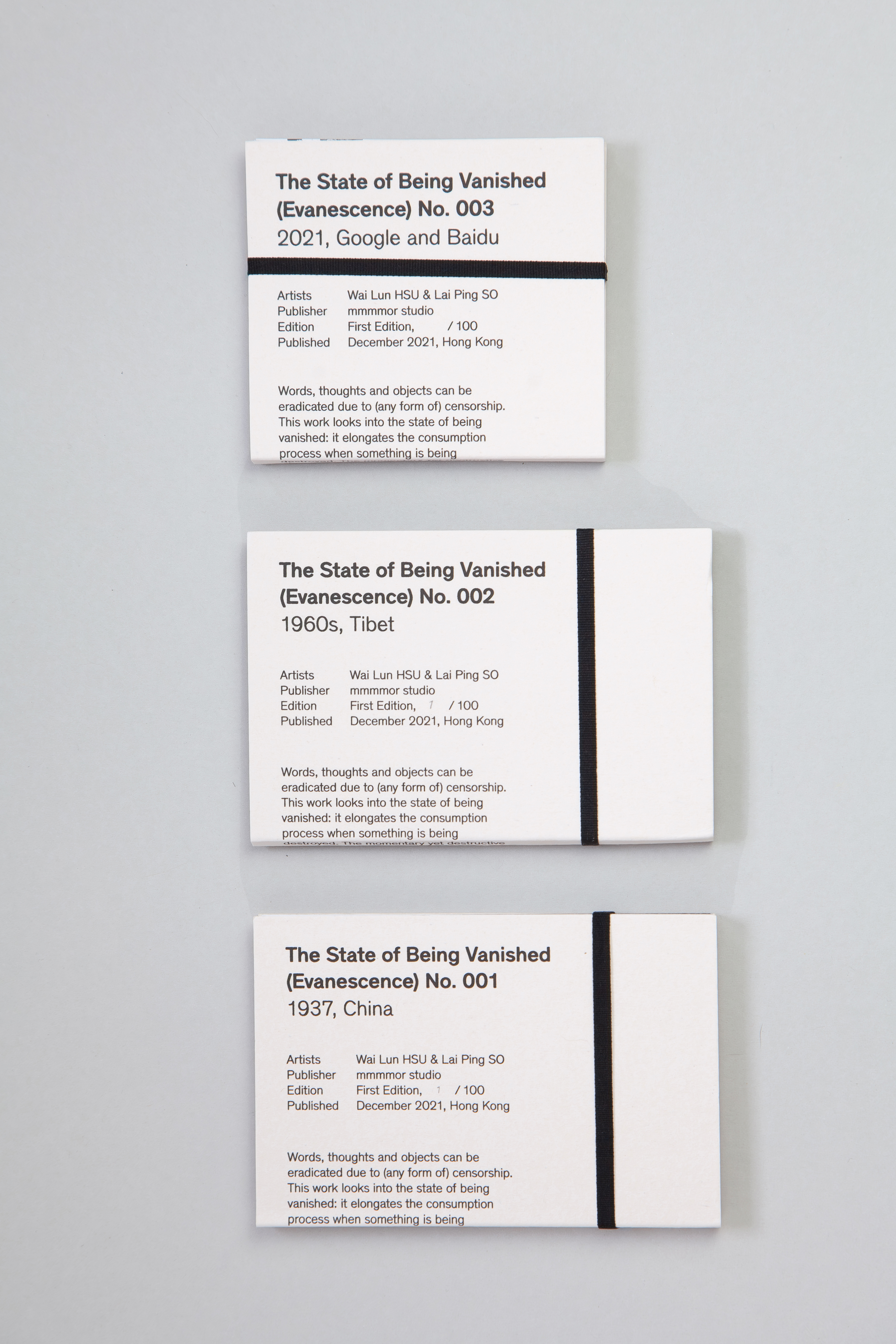 This work underscores the transitory nature of words, thoughts, and objects when subjected to any form of censorship. It looks into the state of being vanished: it elongates the consumption process when something is being destroyed. In- stead of portraying this process as instantaneous, the work extends the consumption process of destruction, transmut- ing the fleeting yet devastating alterations into enduring artifacts–as pages, frames, and books. In doing so, it proposes the structure of a book as a tool for marking ‘time.’